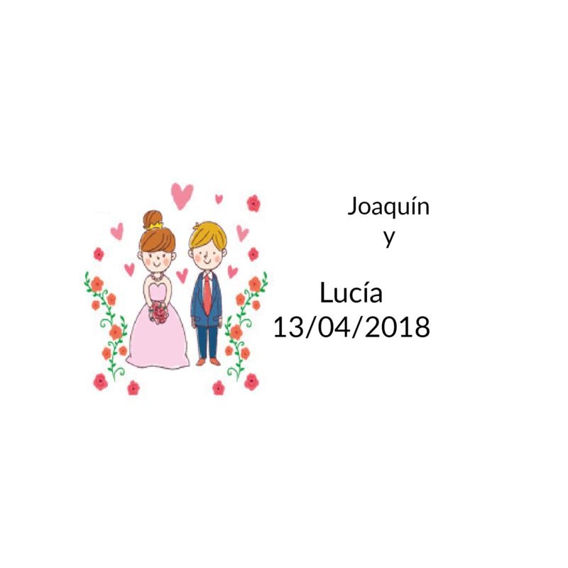 Tarjeta para personalizar regalos de boda. Mide 5,2x3,2 cm. Se pueden personalizar con el nombre y la fecha. Si compras un pack de regalo más bolsa, te regalamos las pegatinas personalizadas.